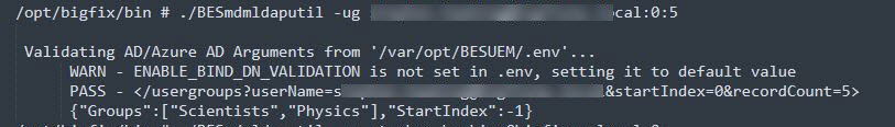 docker exec -it idservice /opt/bigfix/bin/BESmdmldaputil -c groupNames