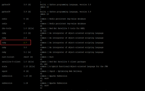 dnf module commands execution on endpoint - RHEL 8 - x86_64」を適用する必要があります。Figure 3. Ruby モジュールのリセット・コマンド