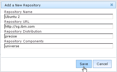 Ubuntu カスタム・リポジトリー管理ダッシュボードを使用して、リポジトリーを追加できます。