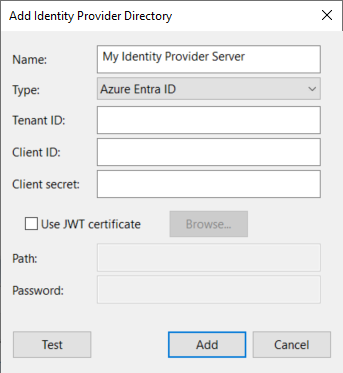 新しいダイアログでは、Microsoft Entra ID を設定するために、次の情報が必要です。