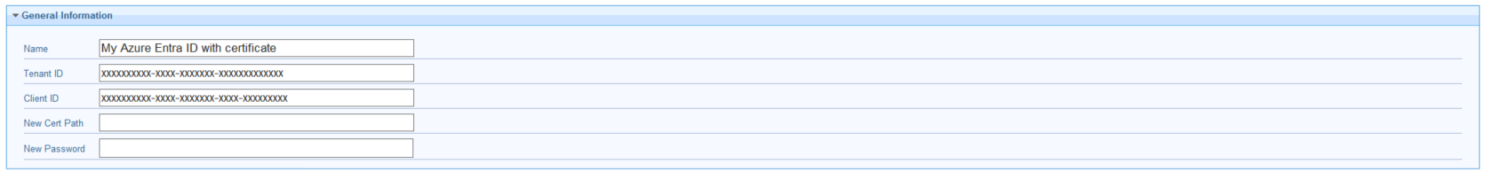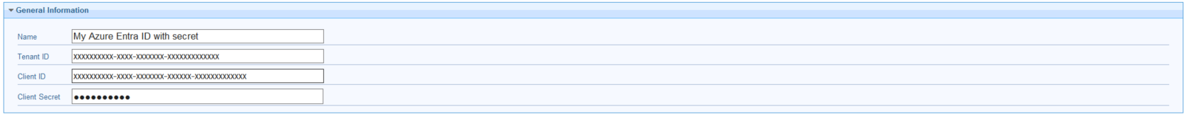 新しいダイアログでは、Microsoft Entra ID を設定するために、次の情報が必要です。