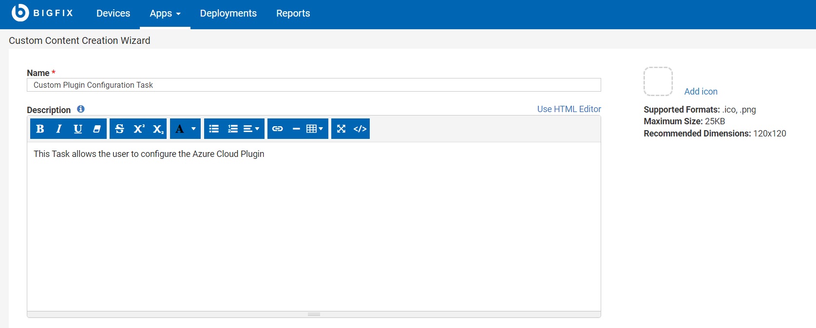 この例では、BigFix WebUI を使用してカスタム・アクションを作成して実行することにより、Azure Asset Discovery プラグインを構成します。