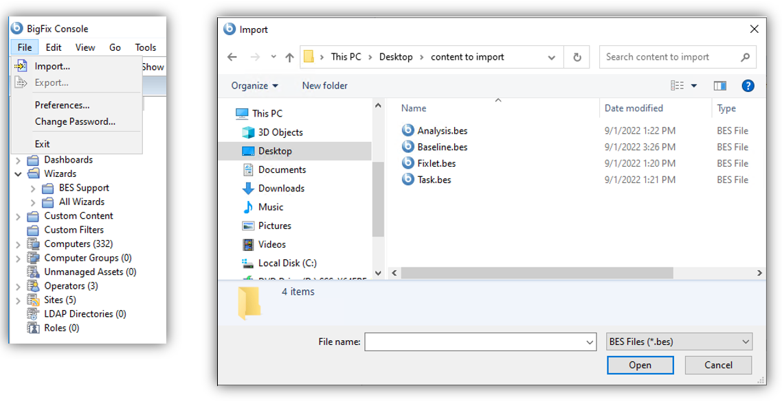 BigFix ファイルには、Fixlet メッセージ、タスク、アクション、またはベースラインのグループが含まれている場合があります。それらのグループを開くと、各コンテンツ・タイプで想定される機能とともに作成用のダイアログが表示されます。詳しくは、選択したコンテンツに関連する作成用のダイアログを参照してください。
