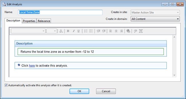- description分析対象のプロパティーを説明するように、分析の説明を編集します。