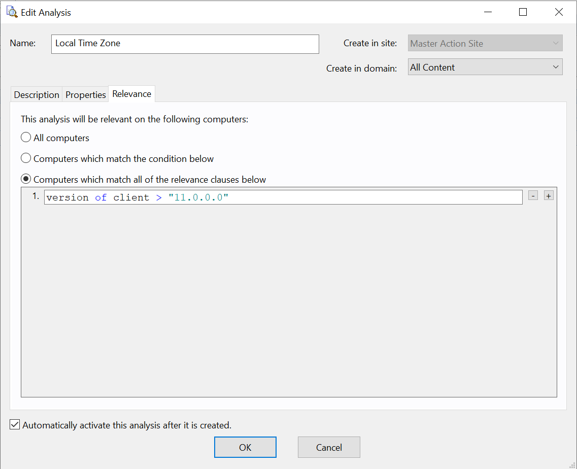 - 関連度: ここでは、分析の対象となる特定のコンピューターを指定するための関連文を定義します。
