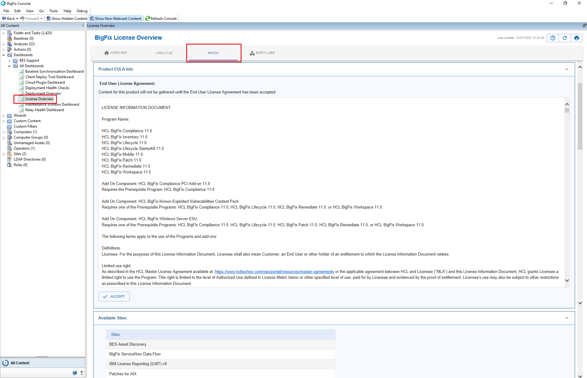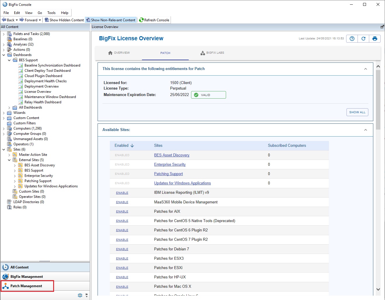 以下のトピックにリストされた手順に従って、新しくインストールされたBigFixサーバー上のパッチ管理アプリケーションを使用して、パッチを適用する方法を確認してください。すべての手順は BigFix コンソールから実行します。