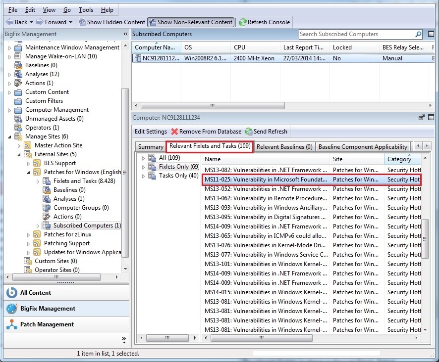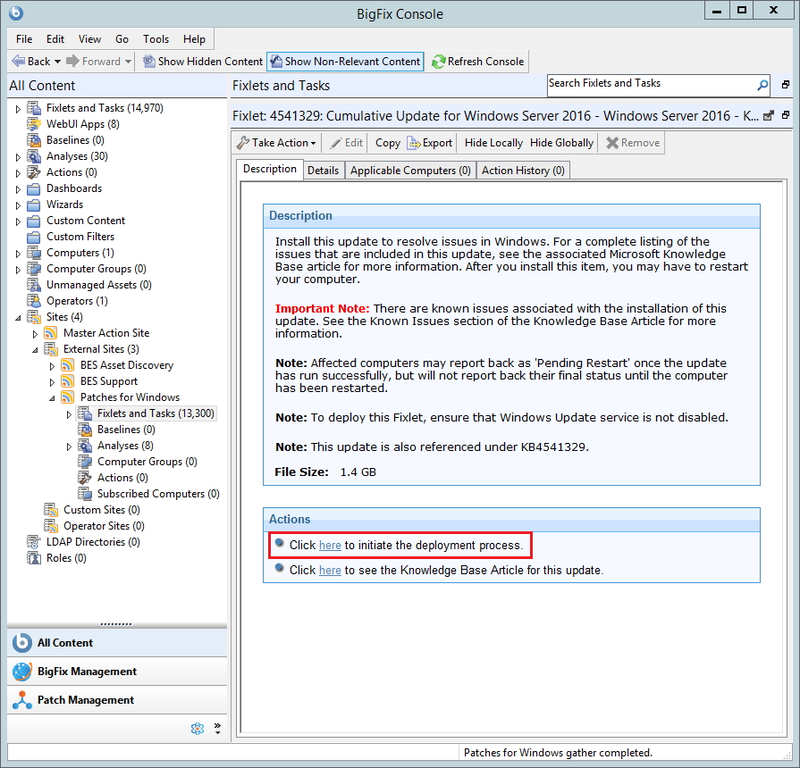 - 「Fixlet」をダブルクリックして、Fixlet の説明にアクセスします。