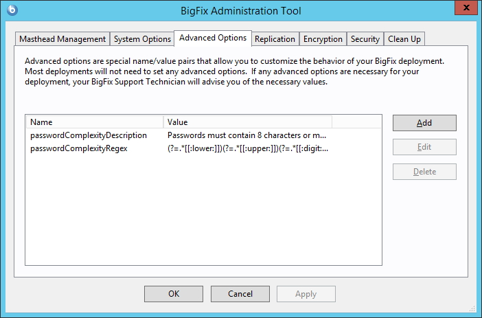設定できる使用可能なオプションのリストについては、詳細オプションのリストを参照してください。