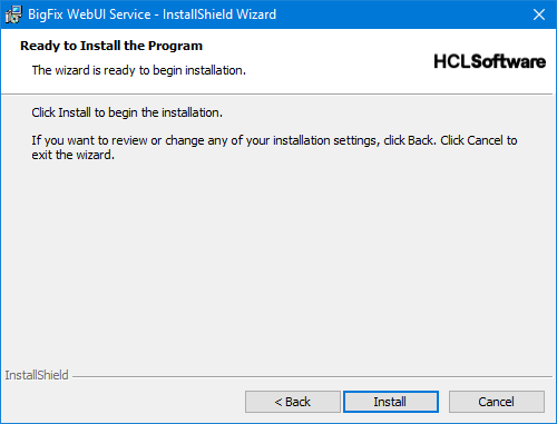 - 「インストール」をクリックし、BigFix WebUI のインストールを続行します。