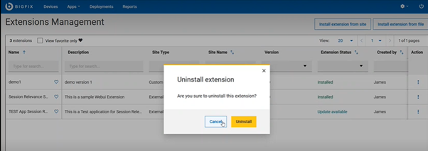 Note: カスタム・サイトから拡張機能をアンインストールする場合は、そのサイトにアップロードされた拡張機能ファイルを削除することもできます。