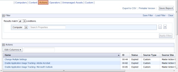 アクションは、Fixlet またはタスク内で「アクション」リンクをクリックすると実行されます。アクションは、BigFix ネットワーク全体を通じて伝達され、実行中には「オープン」状態を示すマークが付けられます。アクションは、停止されたり、有効期限が切れたりすることもあります。標準的なビューには状態が含まれるため、アクションの進行状況を一定期間にわたって監視できます。