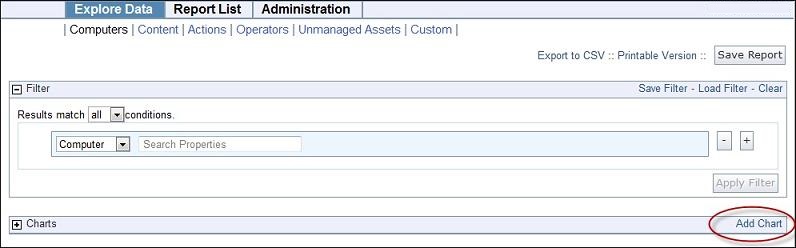 グラフが使用可能な場合、インターフェースは「フィルター」インターフェースのすぐ下にあります。「グラフの追加」リンクをクリックします。
