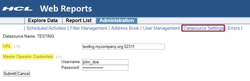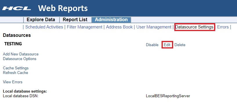 このページに到達するには、「管理」>「データ・ソース設定」>「編集」を選択します。