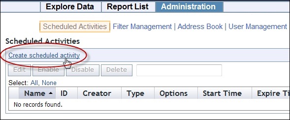 - 「スケジュール・アクティビティー」をクリックし、「スケジュール・アクティビティーの作成」リンクをクリックしてカスタム・イベントを作成します。