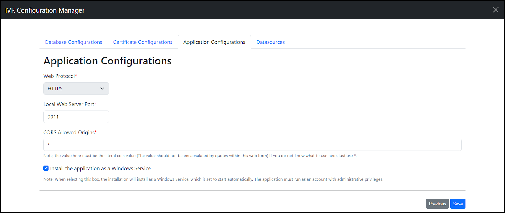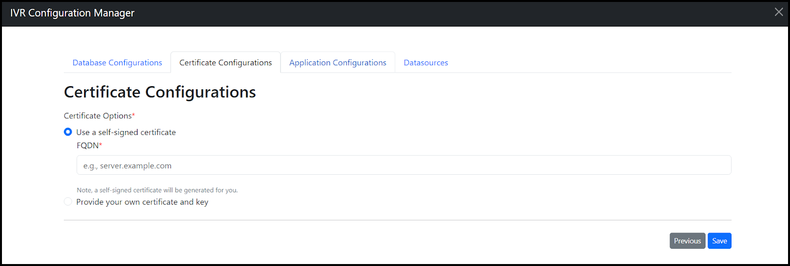 ivrNext.exe --setupsetup コマンドが実行されると、IVR 構成マネージャーのページにアクセスできるようになります。