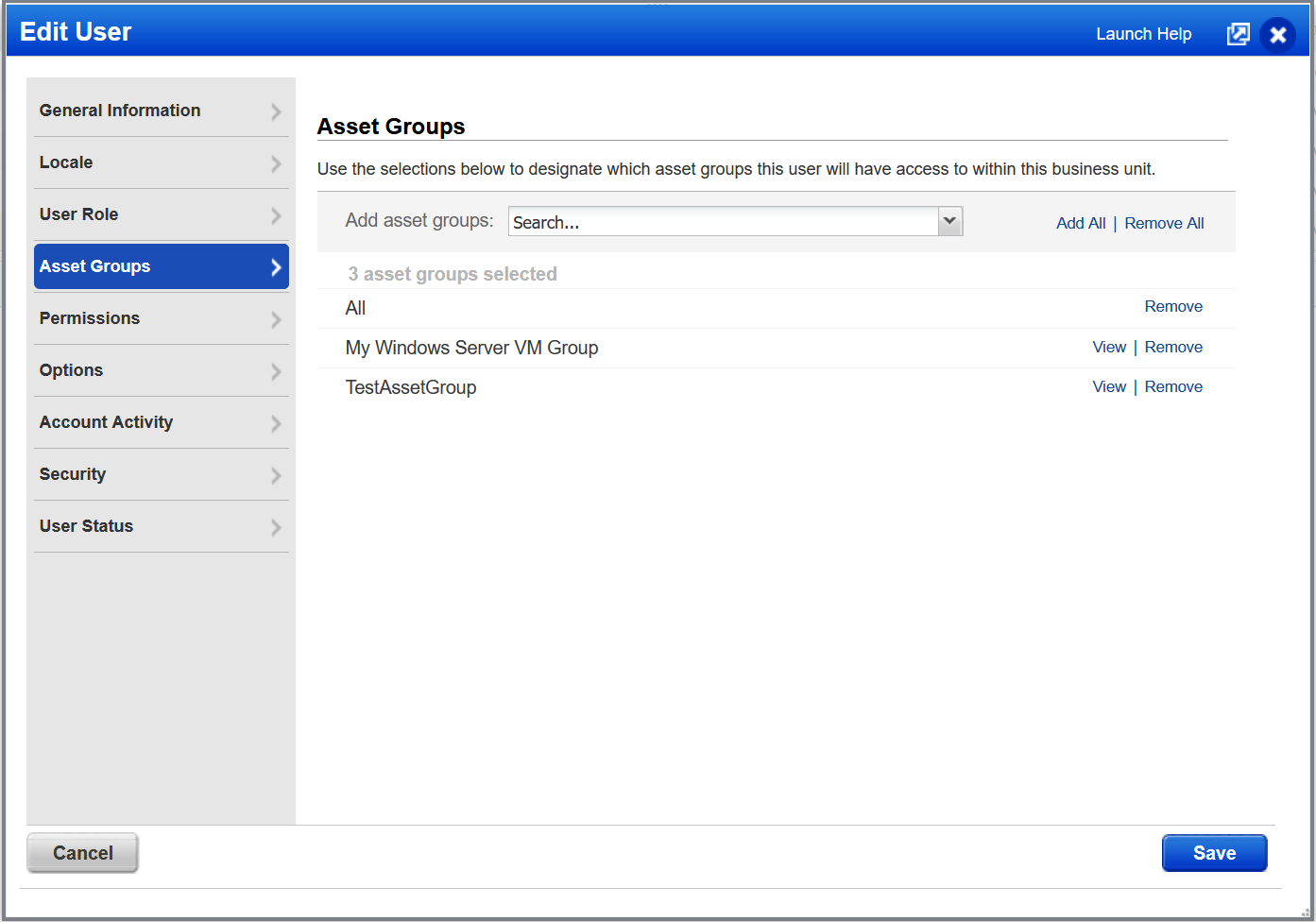 アセット・グループをユーザーに割り当てる方法について詳しくは、リンクを参照してください。