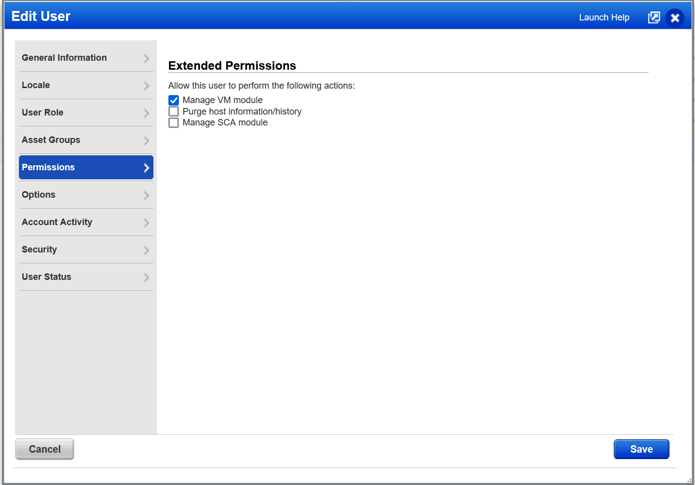「権限」タブで、「VM モジュールの管理」を選択します。