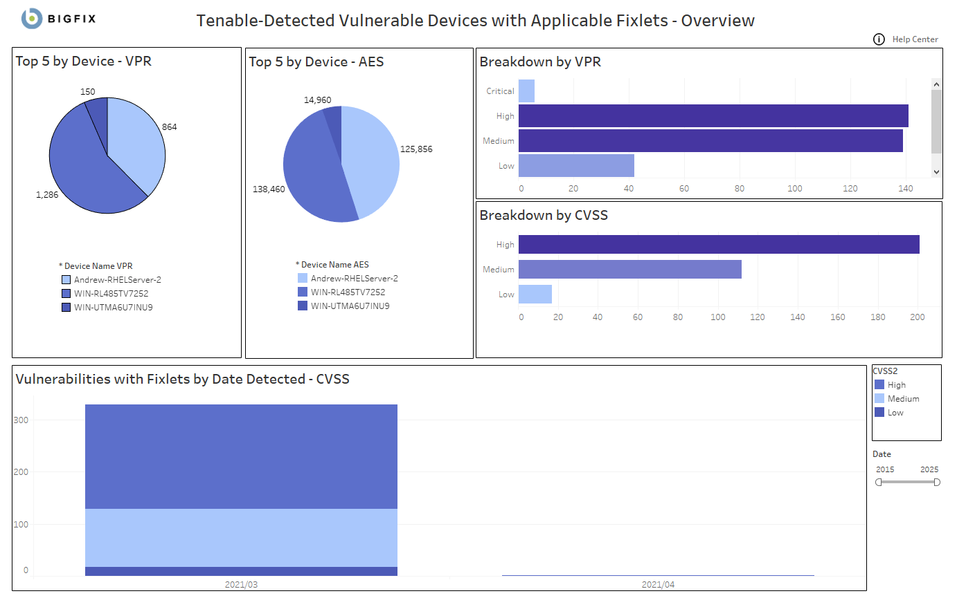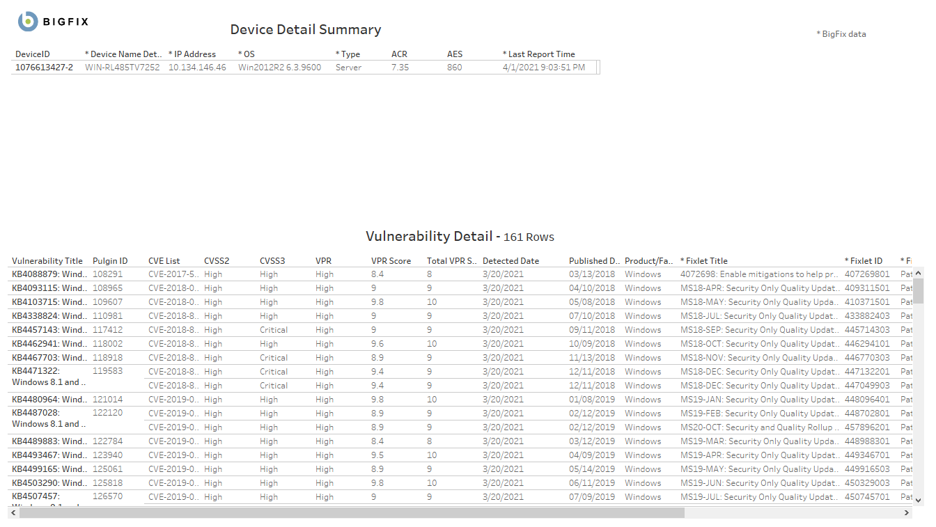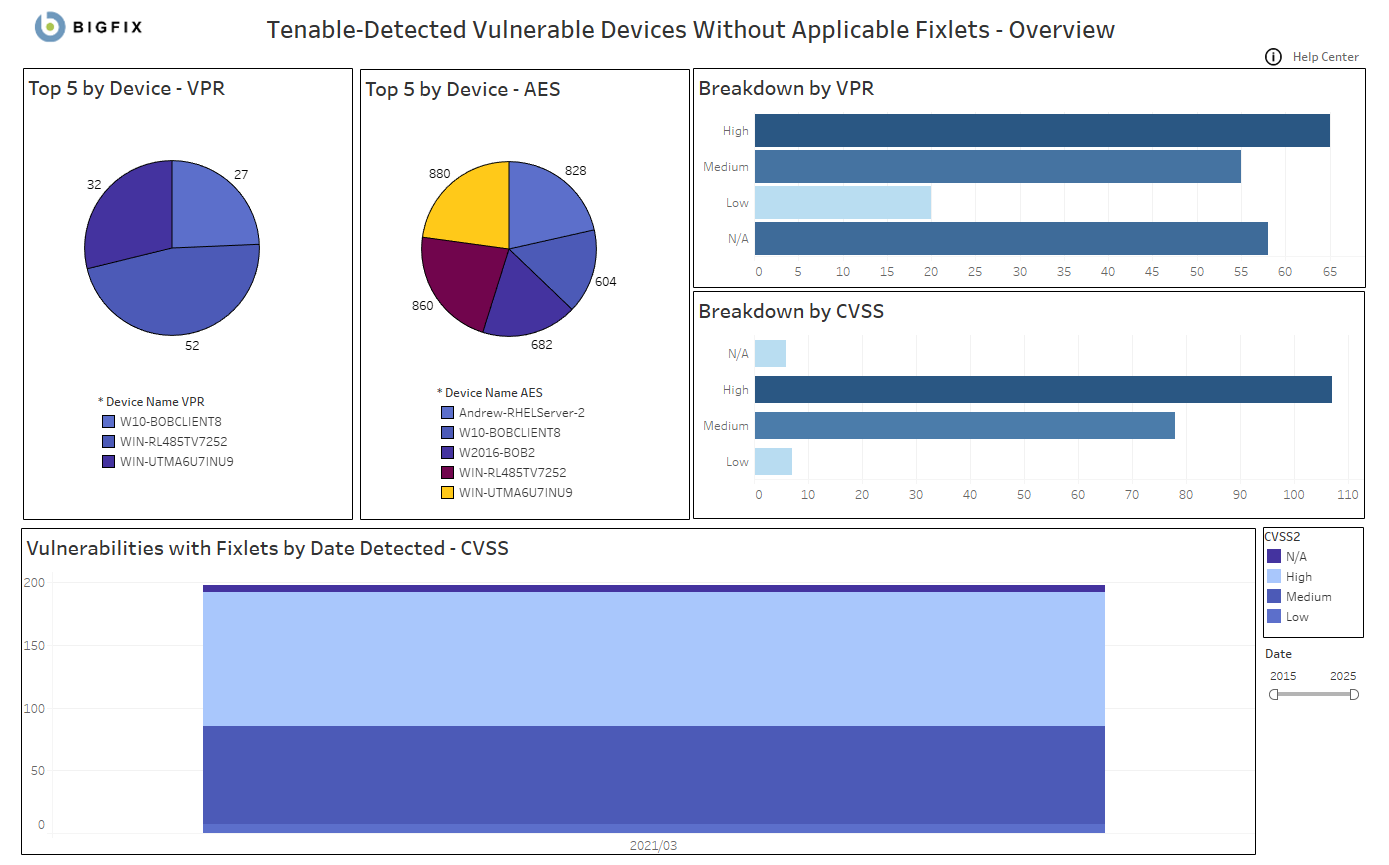 BigFix Insights for Vulnerability Remediation で、Tenable.io の脆弱性データを利用できるようになりました。Tenable Lumin が使用可能な場合、BigFix Insights for Vulnerability Remediation は、次の資産の優先順位付けデータも利用します。