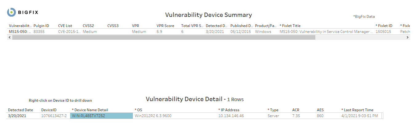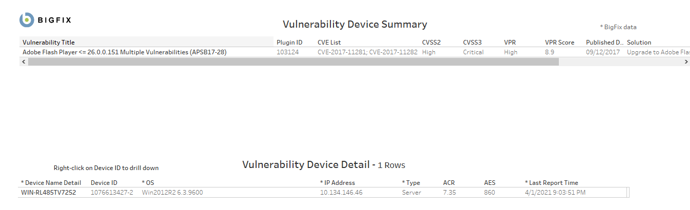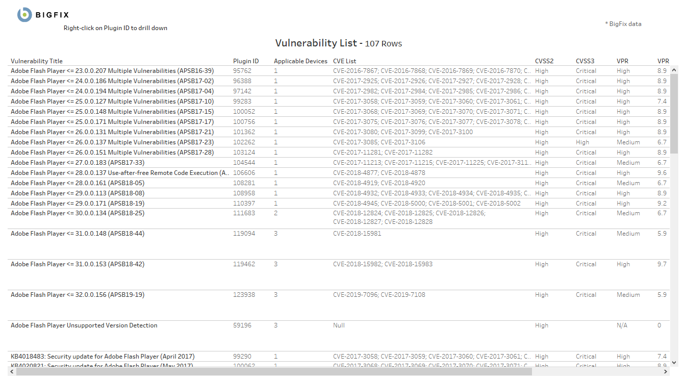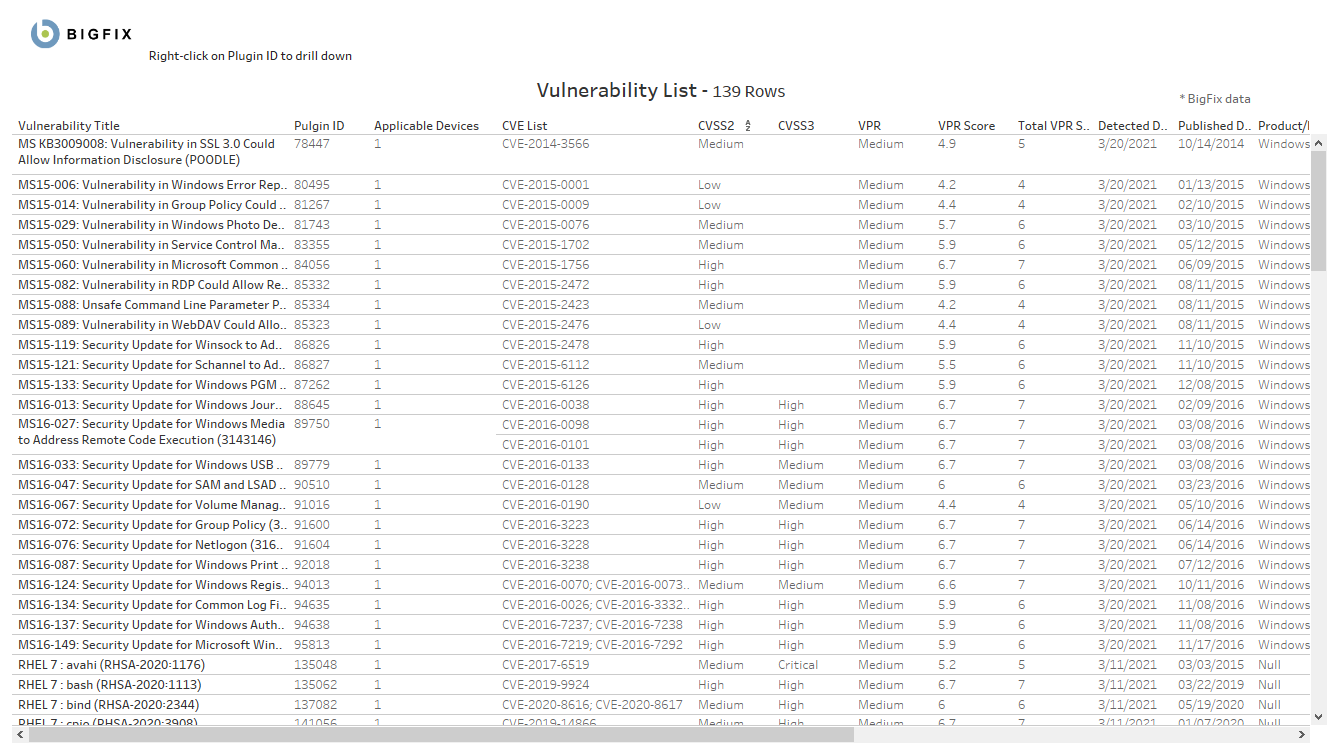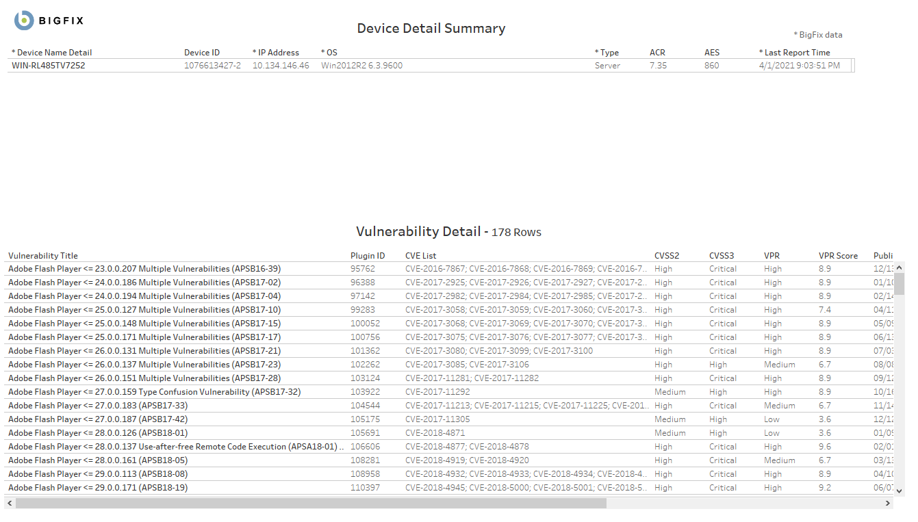 BigFix Insights for Vulnerability Remediation で、Tenable.io の脆弱性データを利用できるようになりました。Tenable Lumin が使用可能な場合、BigFix Insights for Vulnerability Remediation は、次の資産の優先順位付けデータも利用します。