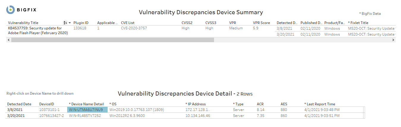 - 該当デバイス - Tenable によってスキャンされ、脆弱性が特定されたデバイス