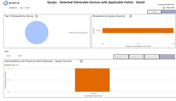 - Qualys 重大度 - 脆弱性に関連付けられたリスクのレベル。