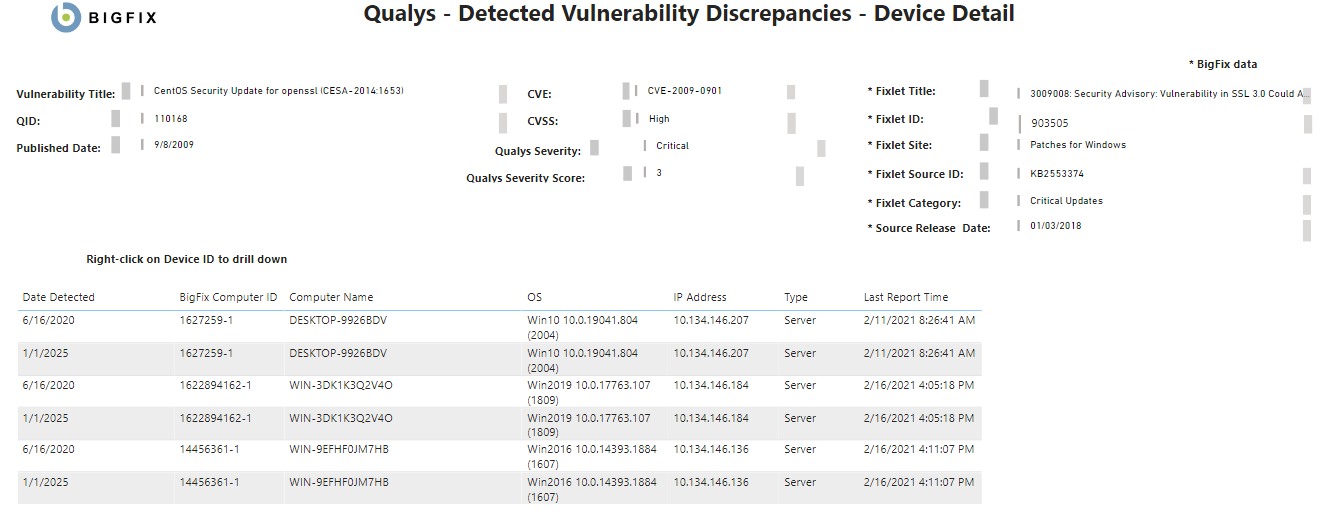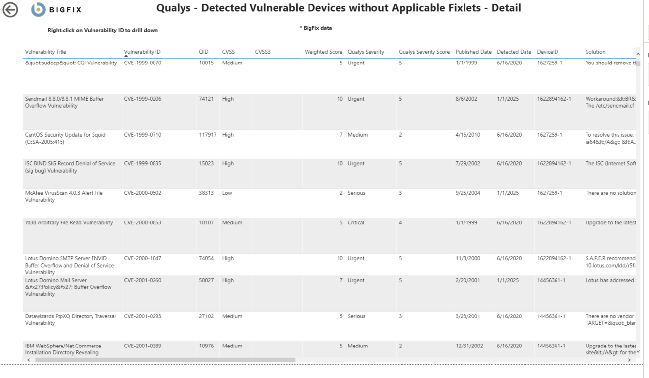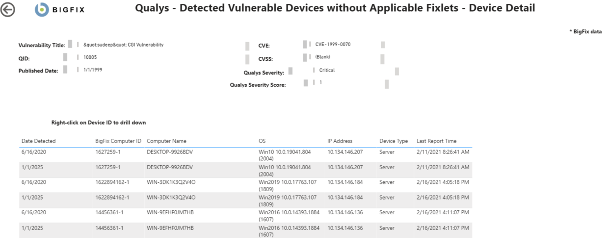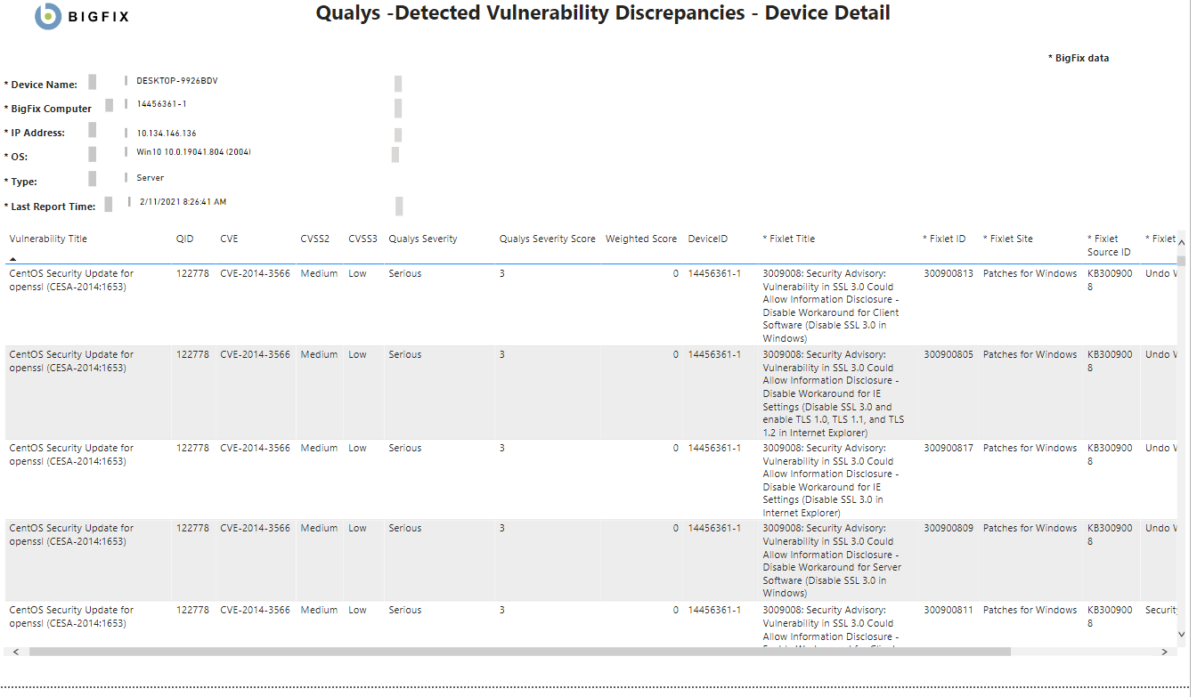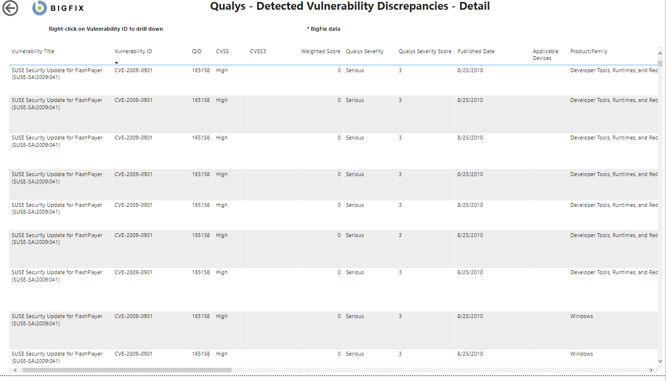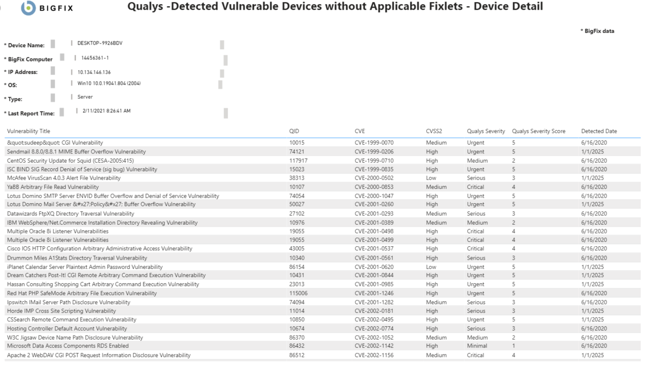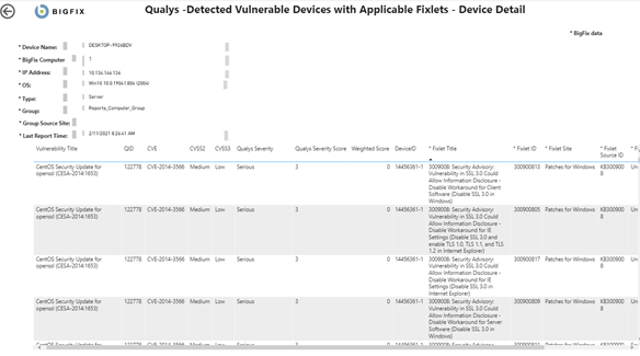 - QID - Qualys ID。Qualys 脆弱性データベースの脆弱性に割り当てられた一意の識別子