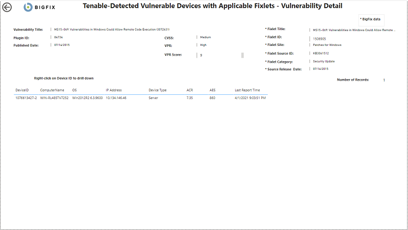 - 該当デバイス - Tenable によってスキャンされ、脆弱性が特定されたデバイス
