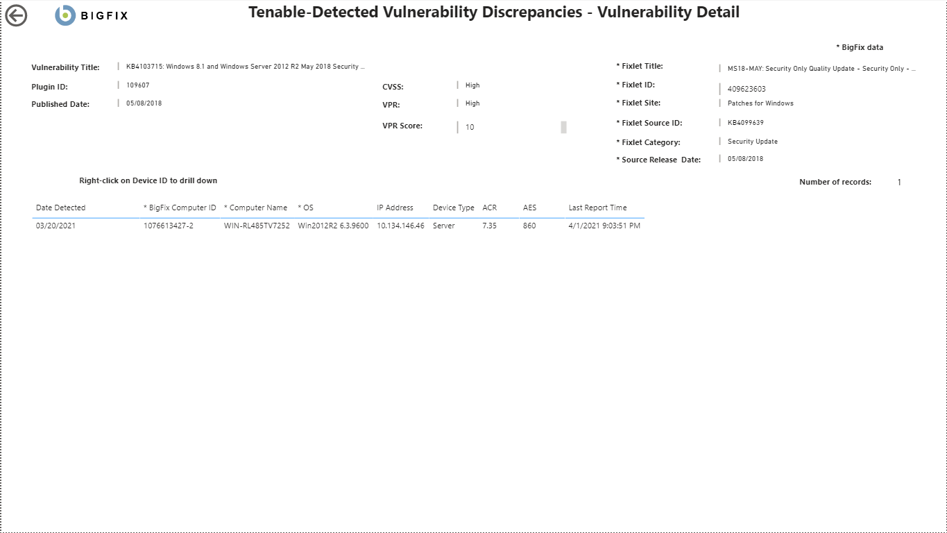 - ACR - 資産の重大度の評価: デバイス・タイプ、デバイスの目的、インターネットへのネットワーク・ロケーション/近接度に基づく資産の相対的な重要度を表す 1~10 の評価。
