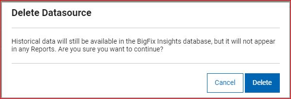 このセクションでは、BigFix 10 Insights でのデータ・ソースの追加、削除、および編集について詳しく説明します。データ・ソースとは、Fixlet、分析、コンピューター、サイト、結果を格納する既存の BigFix Enterprise (BFEnterprise) データベースを指し、Insights はここからのデータを使用して組織全体で重要なデータを表示します。複数のデータ・ソースを Insights に追加し、複数の BigFix Enterprise Server にまたがるエンドポイントのデータを統合して相関付けることができます。各データ・ソースで、個別のサイトを追加または除外して BigFix Insights で使用できます。複数のデータ・ソース間で一致するサイトは、Insights でリンク項目として表示されます。BigFix の各デプロイメントには、Insights で使用する可能性のあるデータ・ソースを区別するために内部的に使用する一意の識別子があります。この識別子は ActionsiteEpoch です。現在、BFEnterprise のインストールごとに 1 つのデータ・ソースをサポートしています。
