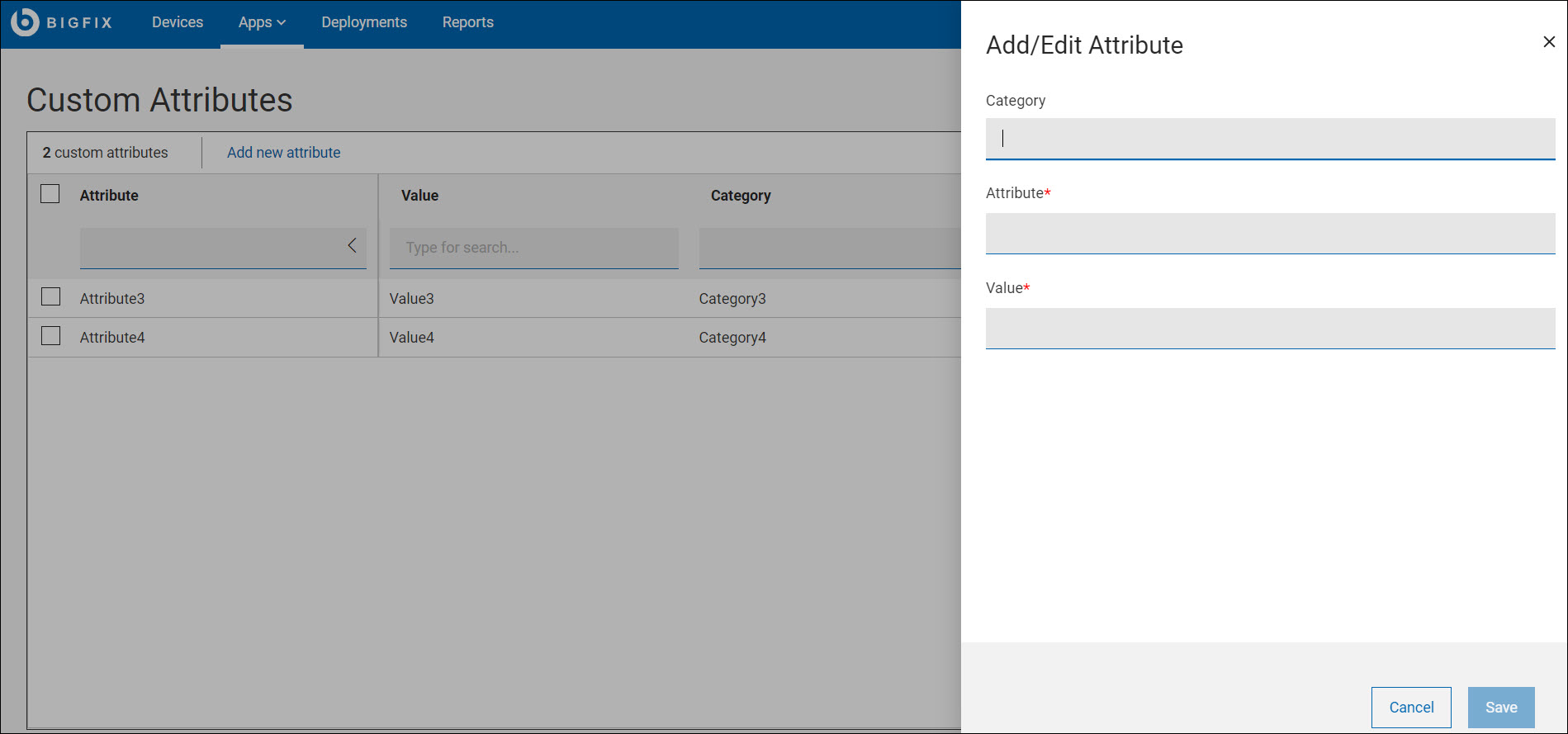 - 「カテゴリー」、「属性」、「値」を編集し、「保存」をクリックします。