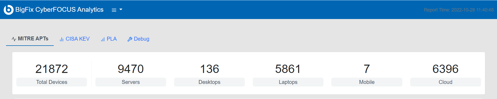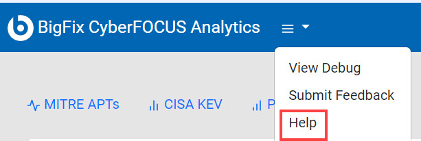 レポートから BigFix CyberFOCUS の詳細情報を取得するには、ドキュメントのページにアクセスします。