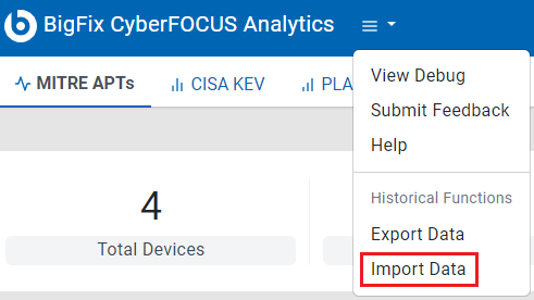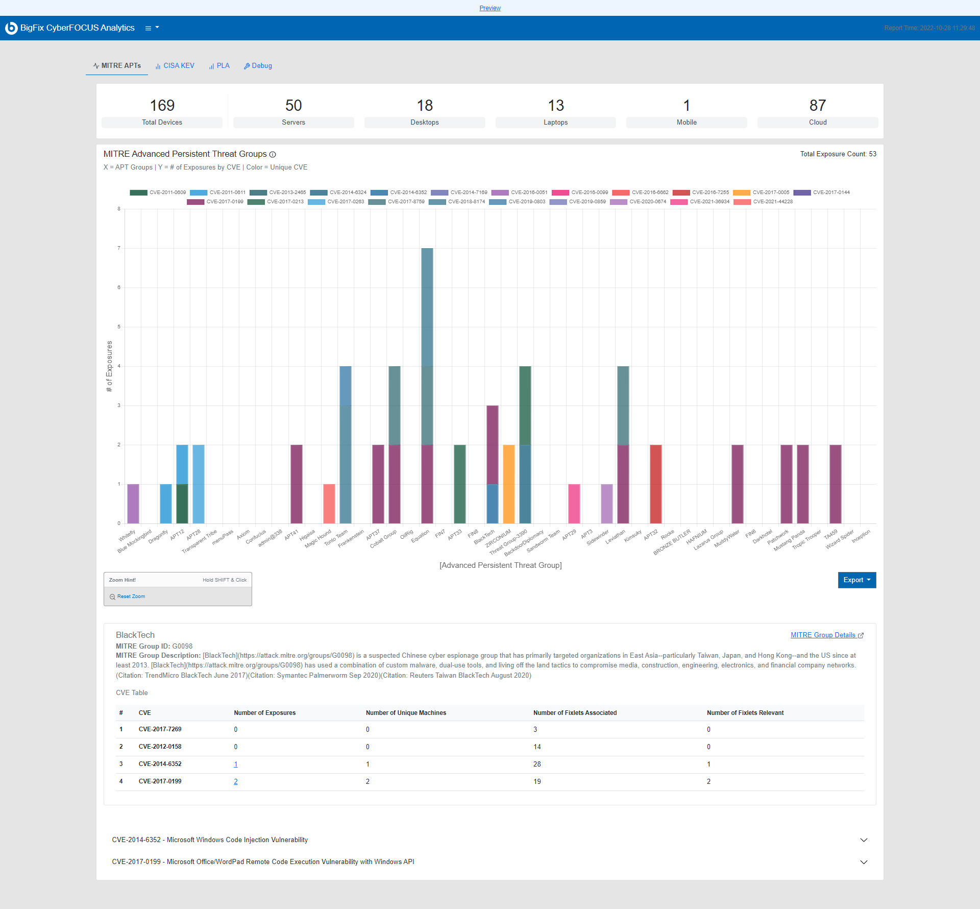 MITRE APT レポートおよび CISA KEV レポートのデータを .csv 形式でエクスポートできます。