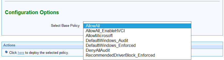 - Allows the selection of a Microsoft WDAC base policy template from the predefined options.