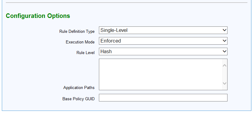 Table 2. Task: Deploy Supplemental Policy on Endpoint v2.0 Configuration Options Field Name Options Description Rule Definition Type Single-Level Same rule level applied to all paths Multi-Level Rules defined via CSV (path, level) Execution Mode Enforced Policy is enforced Audit Policy is applied in audit mode Rule Level Hash Applicable only in Single-Level mode (Hash, Publisher, FilePath, FileName) Publisher FilePath FileName Application Paths N/A Text box. List of file paths (newline or comma separated) for Single-Level mode only CSV Rules N/A Text box. CSV input for Multi-Level mode in the format: Path, Rule Level Base Policy GUID N/A Text field. Required. Specifies the GUID of the base policy to be supplemented. - From the Task: Deploy Supplemental Policy on Endpoint v2.0 pane, click the Applicable Computers(n) tab and view the endpoints on which you want to run the task.