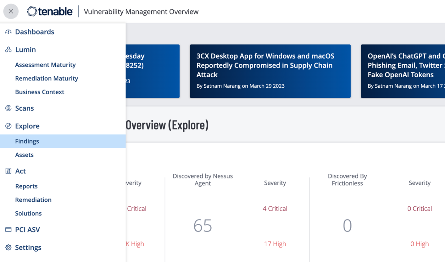 - Open the sidebar and click on Findings under the Explore