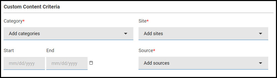 - Under External Content Criteria, select the Operating System, Category, Severity, and Content type.