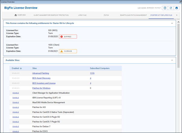 For example, even though your license may include the Patch product, you would still need to access the License Overview dashboard to enable any available external sites for the Patch product, when you want to start using it.