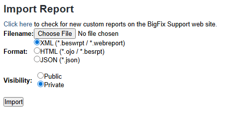 - The imported file can be treated as a Private file that only you can view, or a Public report that is available to everyone.