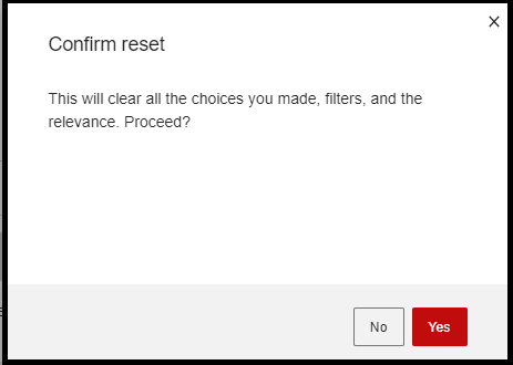 Yes to confirm reset when the pop up window appears.Note: Reset button clears Relevance preview, Inspector Properties and Apply filters.