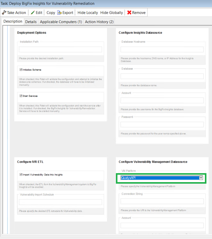 1. Click Deploy Insights for Vulnerability Remediation Fixlet in the BigFix Insights for Vulnerability Remediation external site.