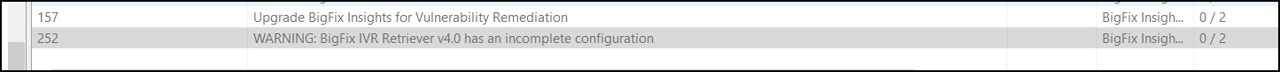 If the setup configuration remains in an incomplete state, the Fixlet WARNING: BigFix IVR Retriever has an incomplete configuration from the site BigFix Insights for Vulnerability Remediation will be relevant to the machine.