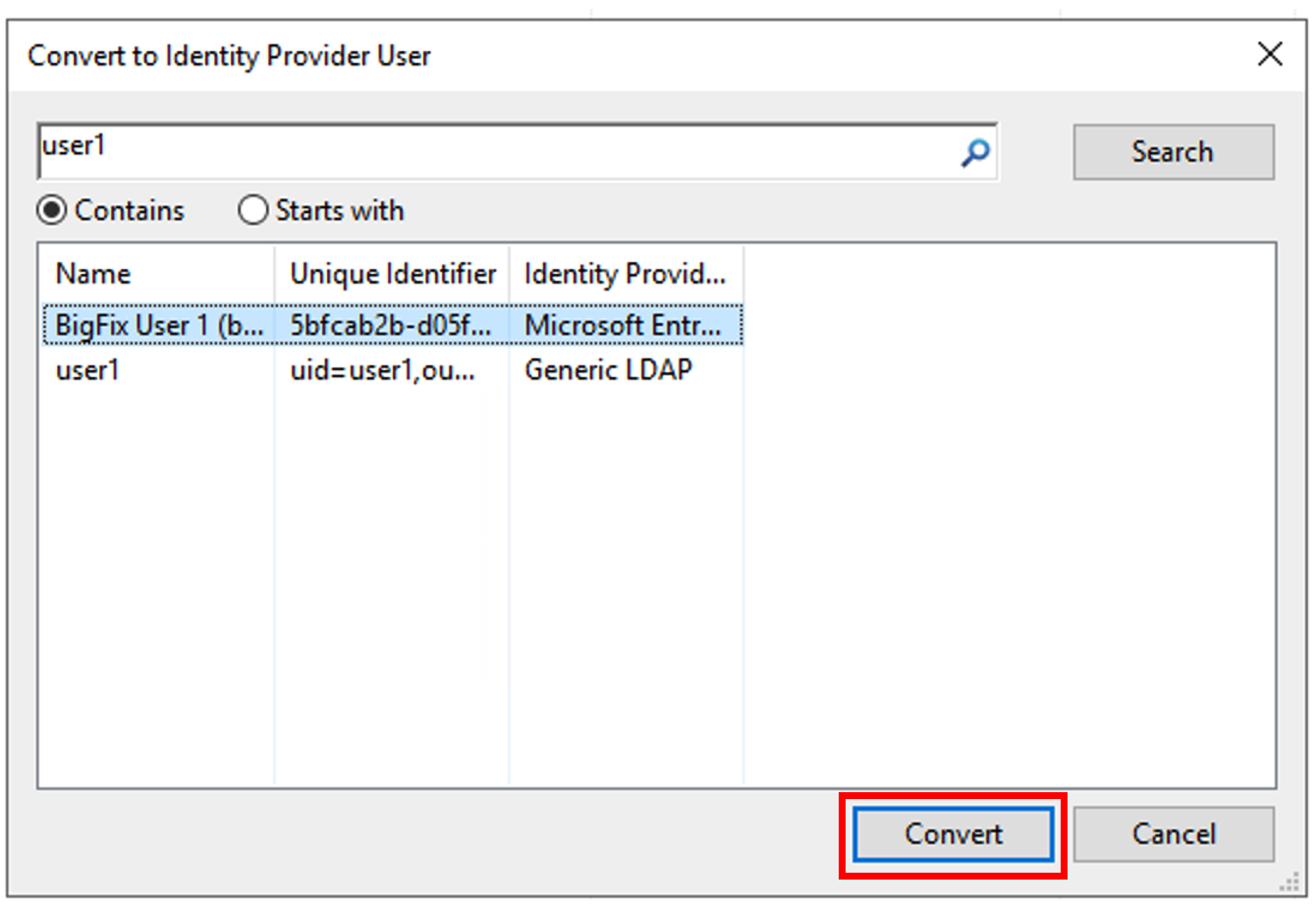 - Select the user name and click Convert.