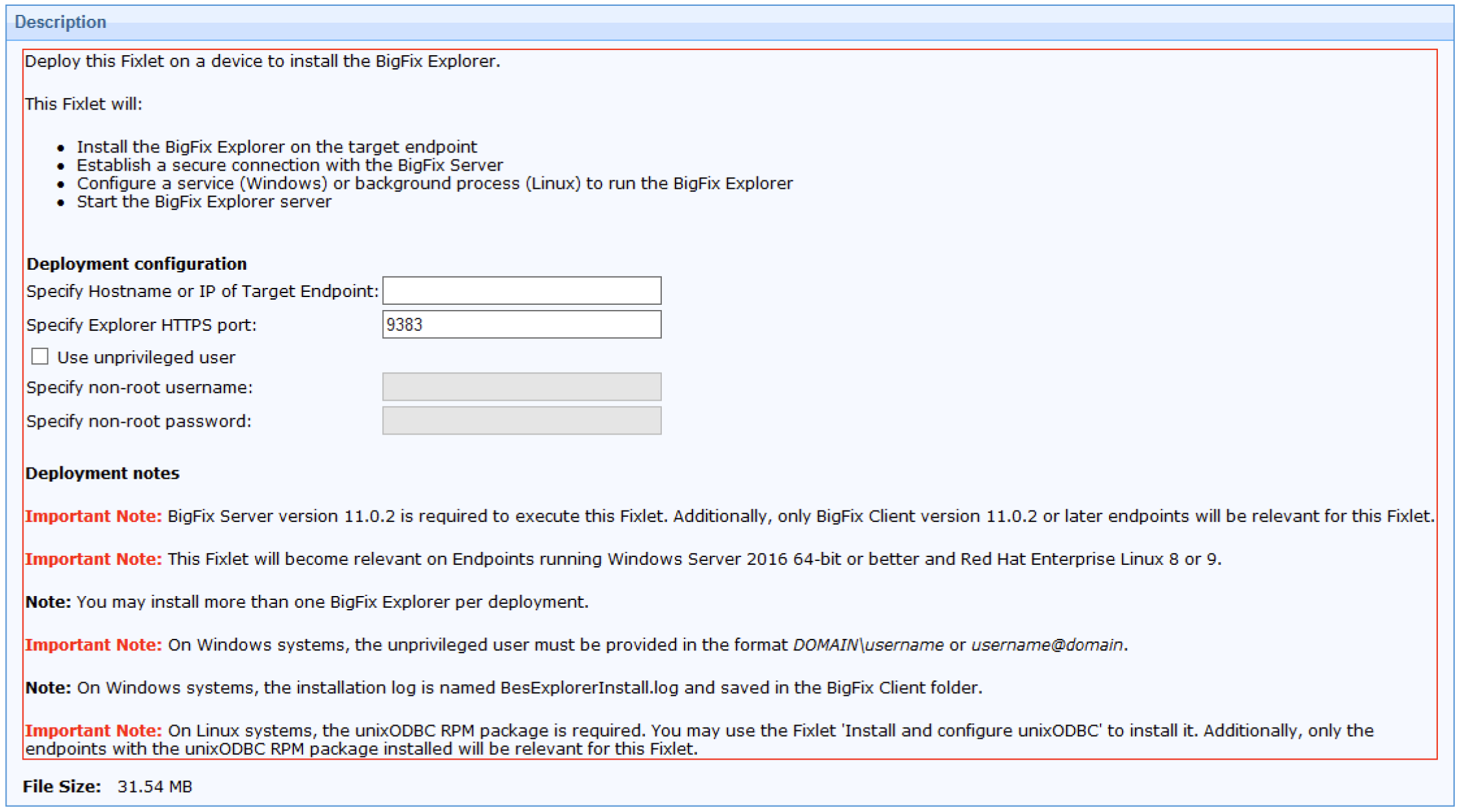 Note: You can deploy this Fixlet only from the BigFix Console, not using the WebUI.