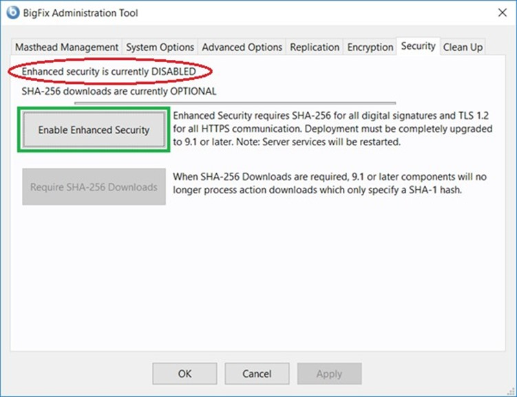 - The BigFix Server will process Agent reports that are signed using either SHA-256 or SHA-384.