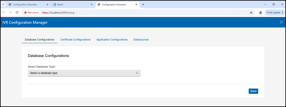 ivrNext.exe --setupOnce the setup command starts running, you will be able to access the IVR Configuration Manager Page.