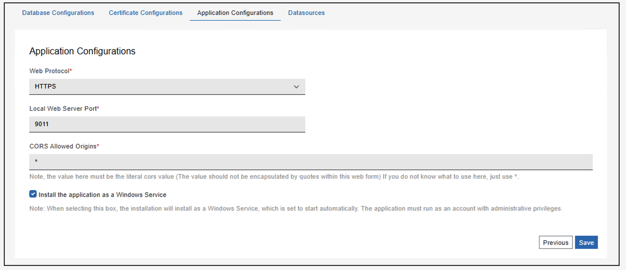 In this tab, provide the port where the exe file has to run. Additionally, this tab gives an option to install the application as a Windows Service.