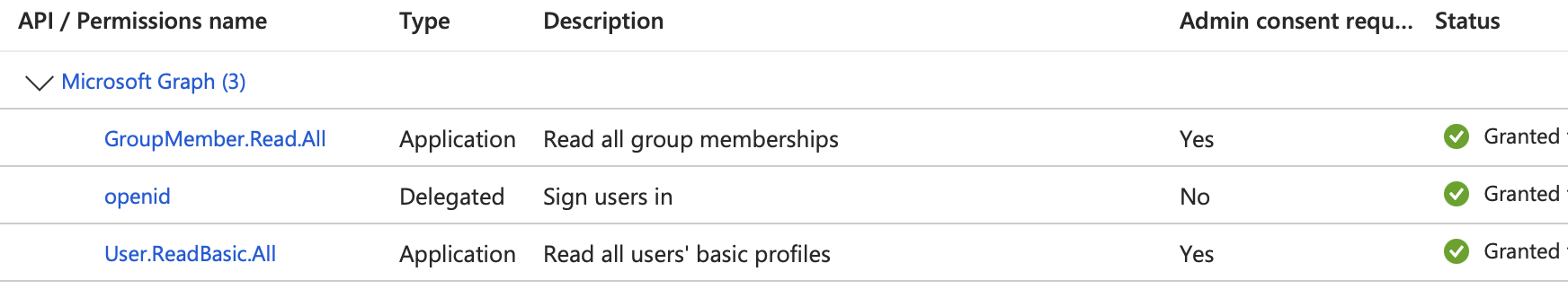 BigFix requires the following API permissions for Microsoft Graph related to user and group membership to retrieve the necessary information and enable Entra ID users to log in and access BigFix applications with the appropriate privileges as shown in the image below: