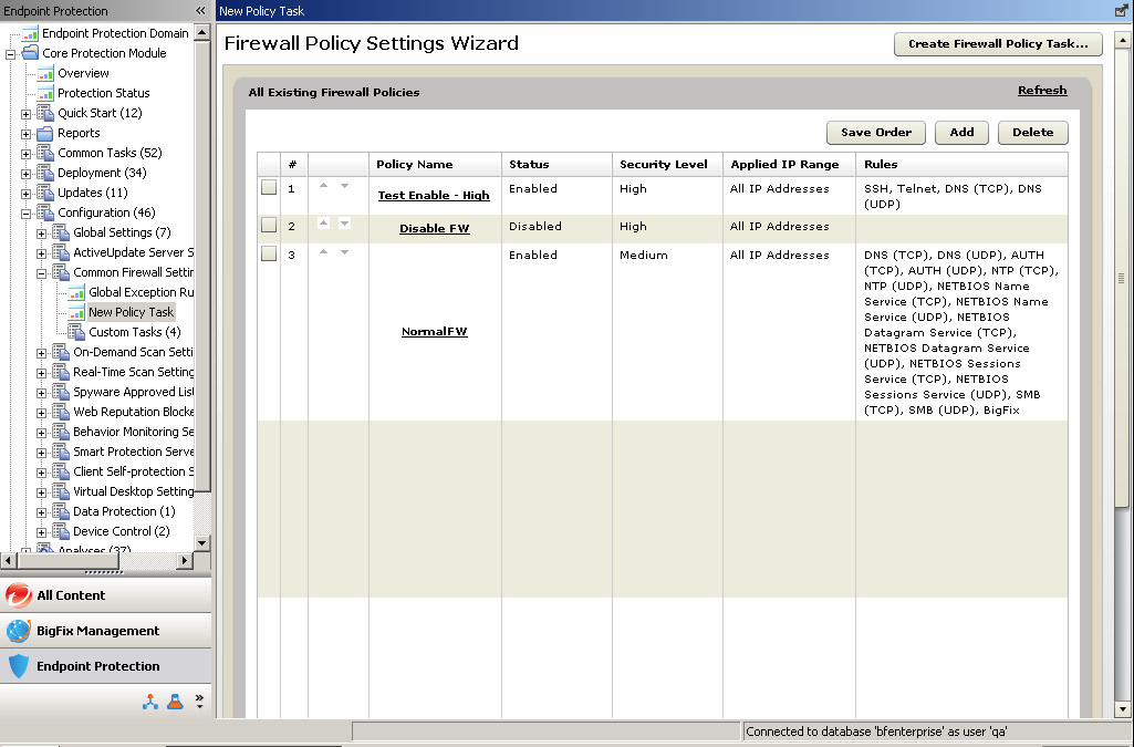 Create Firewall Policy Task: Only policies that have been bundled into a Task can be deployed to endpoints. You can apply different policies to different endpoints by creating multiple Tasks.
