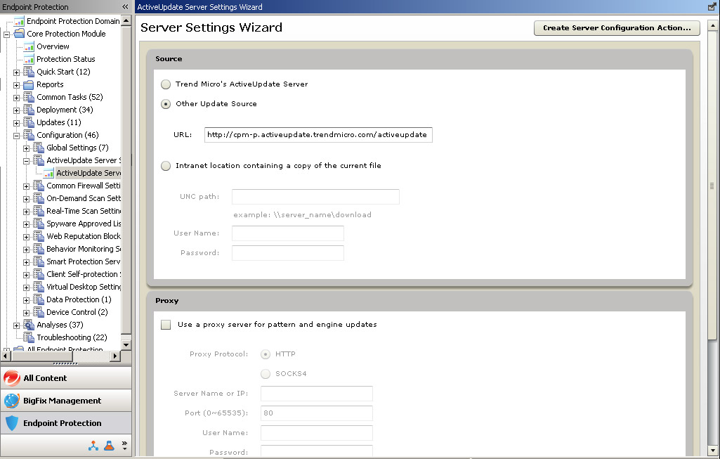 - Under Source, choose Trend Micro’s ActiveUpdate Server. See ActiveUpdate Server Settings Wizard for information about all the configuration choices available on this page.