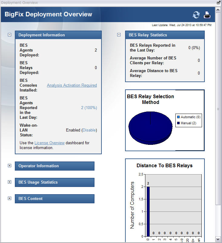Use the Deployment Health Checks Dashboard and the Deployment Overview Dashboard to manage and monitor the health of your BigFix environment.